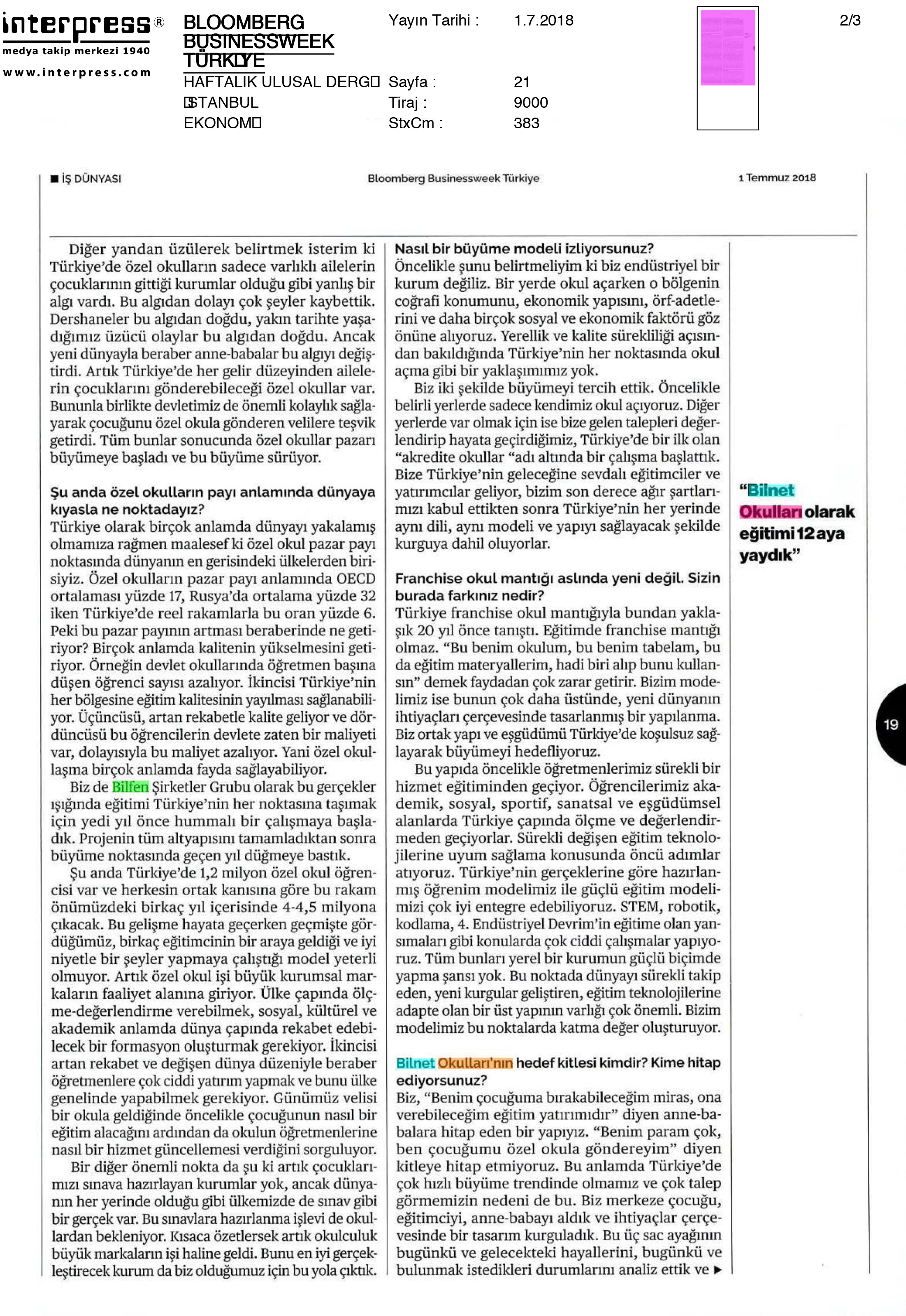 Bilnet Okulları'ndan Kalite Odaklı Büyüme Yaklaşımı